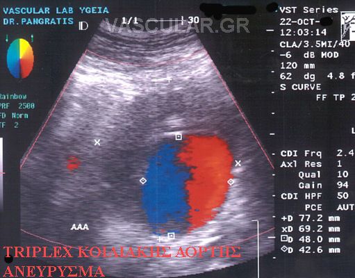 Õðåñç÷çôéêüò Ýëåã÷ïò triplex åðéâÜëëåôáé óå üëïõò ôïõò áóèåíåßò ðïõ ðáñïõóéÜæïõí éóôïñéêü, ìå éó÷áéìéêÜ óõìðôþìáôá Þ êëéíéêÜ åõñÞìáôá éó÷áéìßáò Üêñùí êáé ïñãÜíùí, êáñùôéäéêÞ óôÝíùóç óõìðôùìáôéêÞ – áóõìðôùìáôéêÞ, õðÝñôáóç Þ óôåöáíéáßá ðÜèçóç, éó÷áéìßá êÜôù Üêñùí êáé ýðáñîç óõããåíïýò ðñþôïõ âáèìïý ìå áíåýñõóìá ôçò êïéëéáêÞò áïñôÞò (ÁÊÁ).